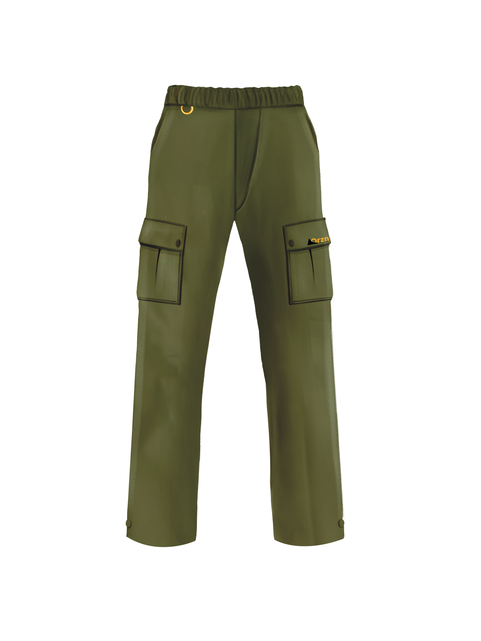 Le tasche laterali piatte mantengono la linea minimal, senza aggiungere volume, mentre la chiusura con bottone frontale e asola garantisce una tenuta sicura. Il logo ORZN รจ visibile sulla tasca, in posizione discreta ma distintiva.